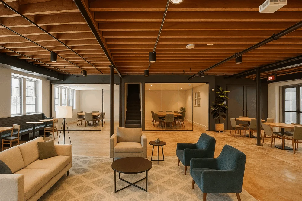 Formerly a church, this beautifully reimagined space now blends modern design with timeless character, offering a unique mix of event space and office suites.