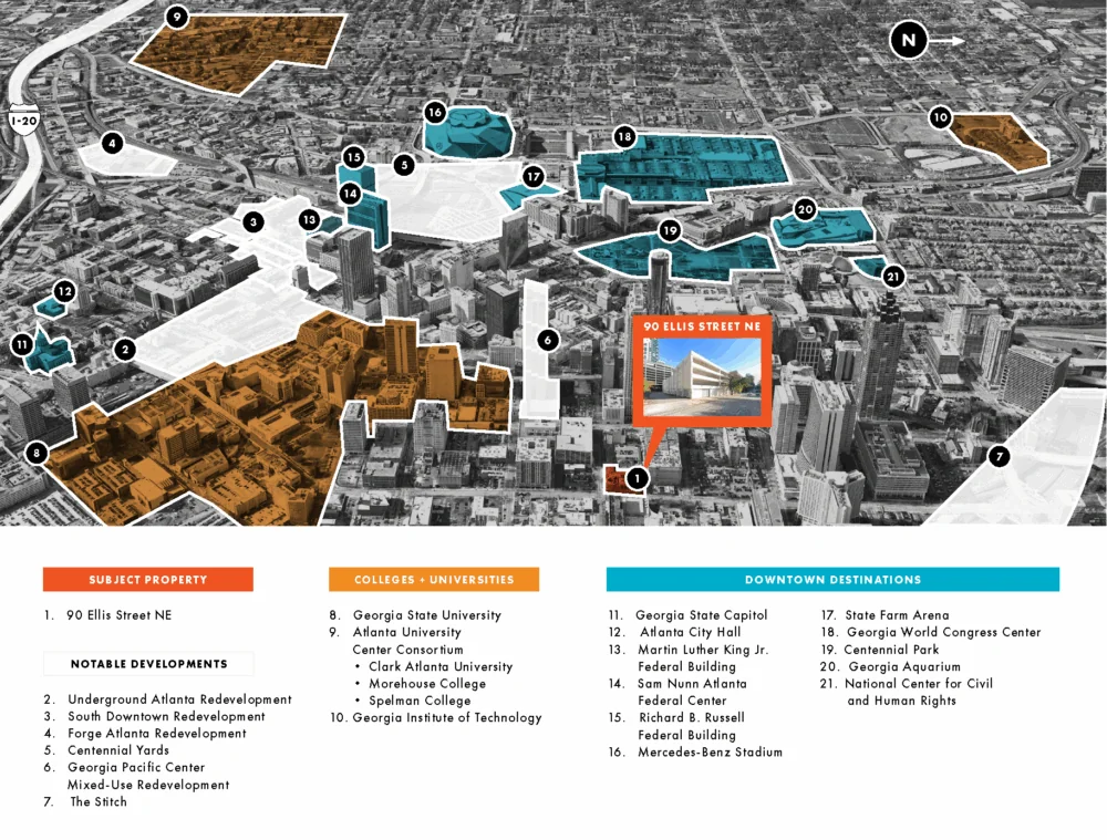 Downtown Atlanta is home to more than 28,000 residents, supports a daytime office population of approximately 195,000 employees, and serves over 65,000 students in and around the downtown area. These permanent demand drivers create a strong and consistent need for monthly parking, positioning 90 Ellis to effectively capture this demand.